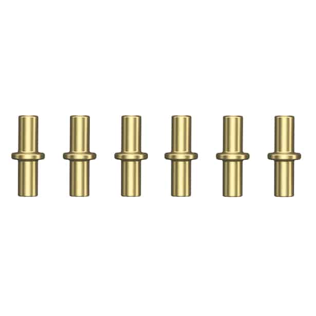 Set îmbinări adezive din alamă pentru tijă din fibră de sticlă GF3 Ø 3 mm. Îmbinarea adezivă este lipită de tija din fibră de sticlă cu adeziv special și astfel servește ca piesă de legătură între tija din fibră de sticlă și îmbinarea de capăt de protecție împotriva îndoirii. În acest fel, orice puncte de întrerupere pot fi reparate.